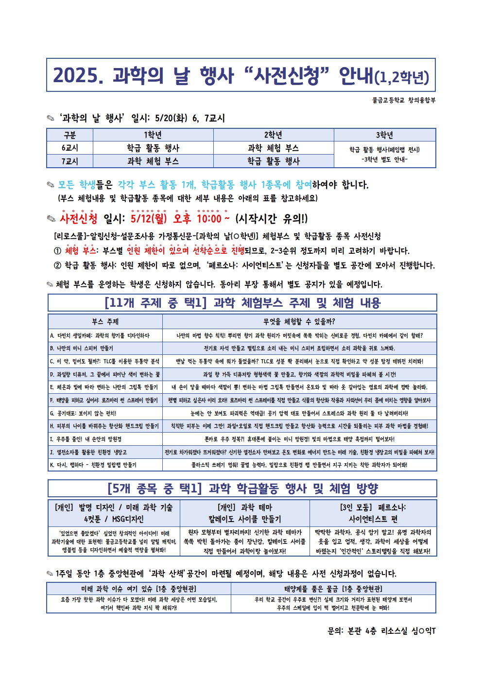 2022. 과학의 날 행사 계획(모든 종목 다 있음)