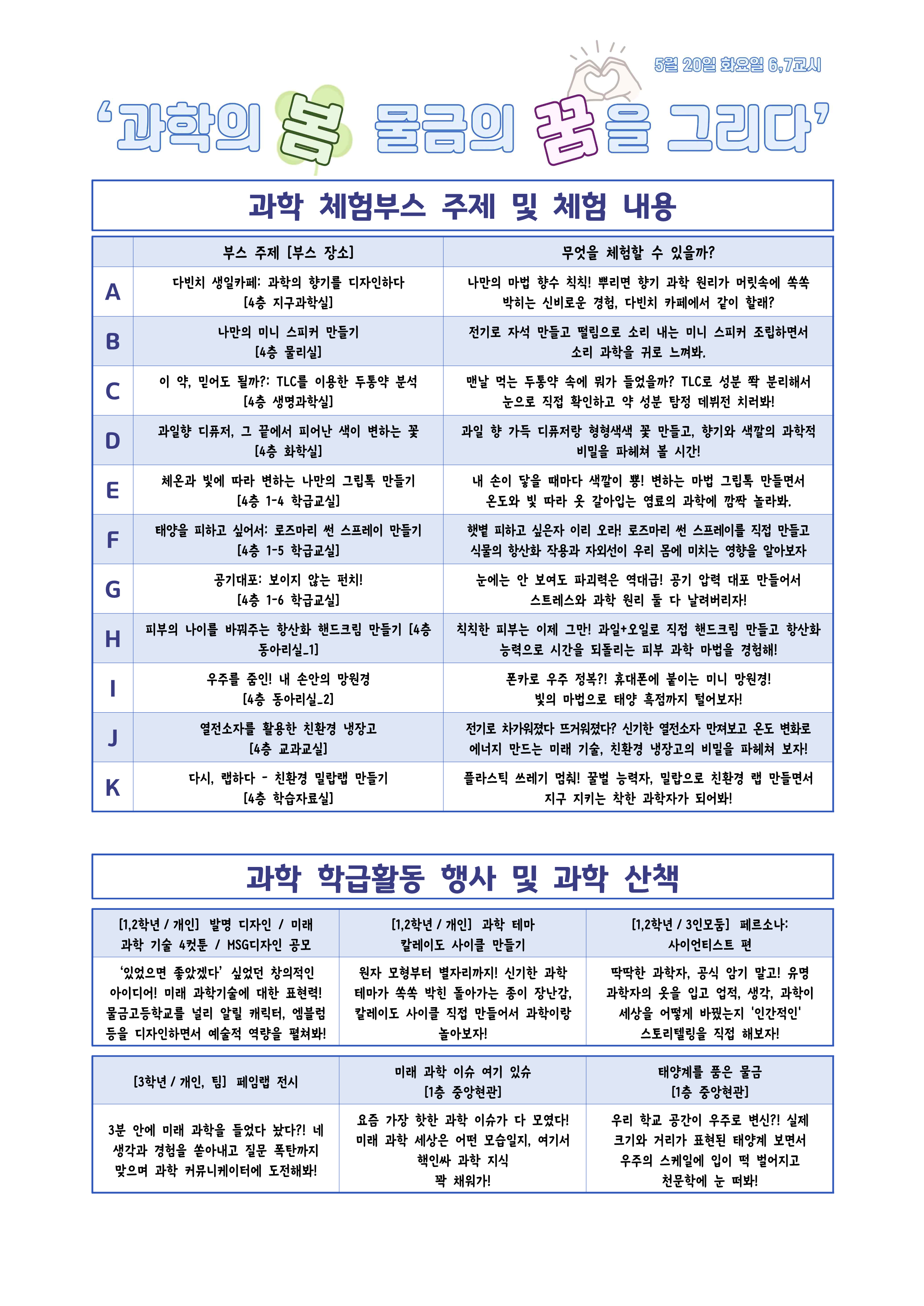 과학이 펼쳐진 봄에 물금인들의 꿈을 마음껏 펼칠 수 있도록 적극적으로 동참해 봅시다~!